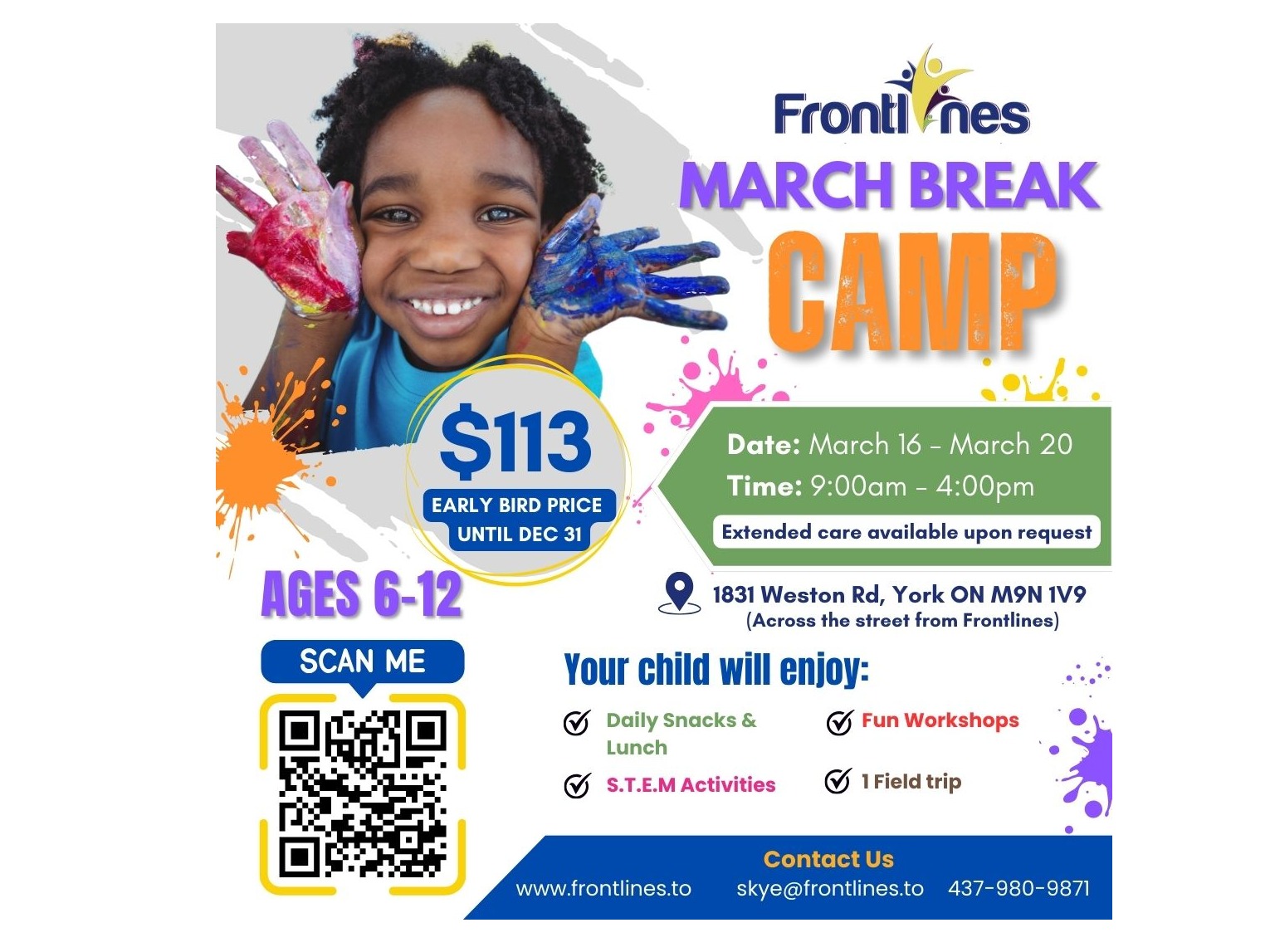 Looking for a fun way to spend your March Break? Join us for a week of games, food, adventures, and lots more at this year's Weston Frontlines March Break Camp, starting from March 16 to the 20th.