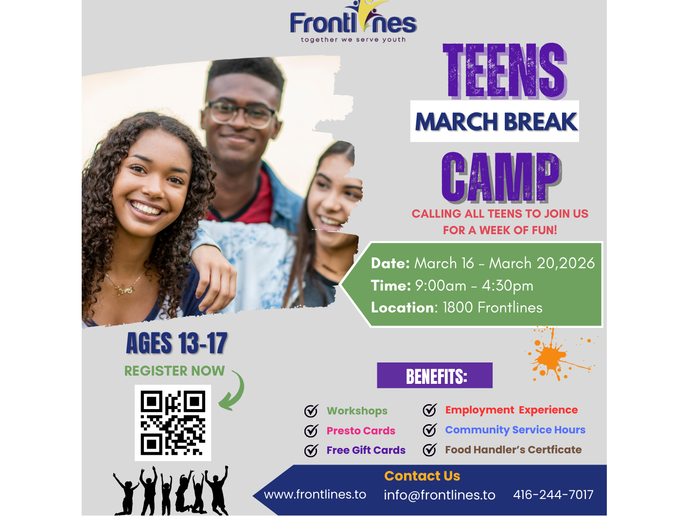 This March Break, March 16-20th, teens will have the opportunity to earn community service hours while participating in exciting several trainings and volunteer activities. Meals are included, with a one-hour lunch break each day, and a chance to earn Standard First Aid, Stop the Bleed, Food Handlers Certification and more!